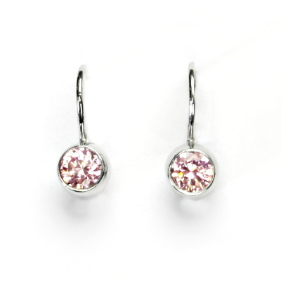 Dámské náušnice z bílého zlata jsou zdobeny zirkony růžovým zirkonem. Materiál je zlato 585/1000. Náušnice mají zapínání na patent. Celková výška náušnice je 15 mm. Orientační váha náušnic je 1,70 g. Rozměr zdobné části náušnice je 6x6 mm.