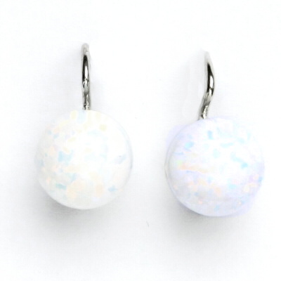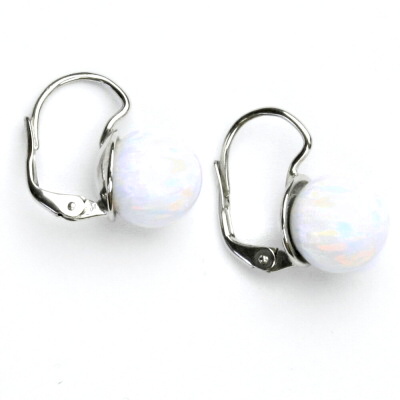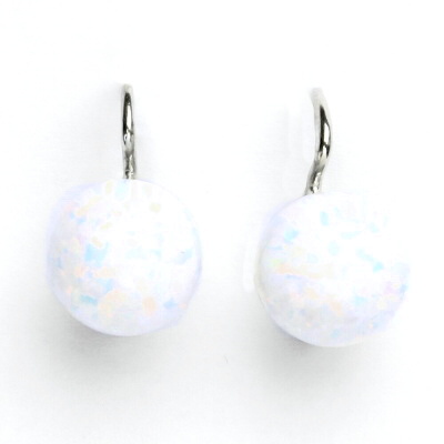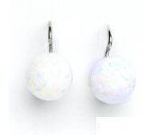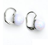 Náušnice z bílého zlata jsou zdobeny syntetickým bílým opálem - kulička o průměru 10 mm. Materiál je zlato 585/1000. Orientační váha náušnic je 3,98 g. Celková výška náušnice je 16 mm.