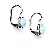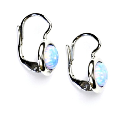 Náušnice z bílého zlata jsou zdobeny světle modrým syntetickým opálem o průměru 6 mm. Materiál je zlato 585/1000. Orientační váha náušnic je 2,33 g. Celková výška náušnice je 15 mm.