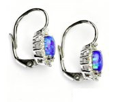 Náušnice z bílého zlata jsou zdobeny fialovým syntetickým opálem o rozměru 7x5 mm a malými čirými zirkony. Celková výška náušnice je 18 mm. Materiál je zlato 585/1000. Orientační váha náušnice 3,37 g.