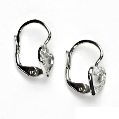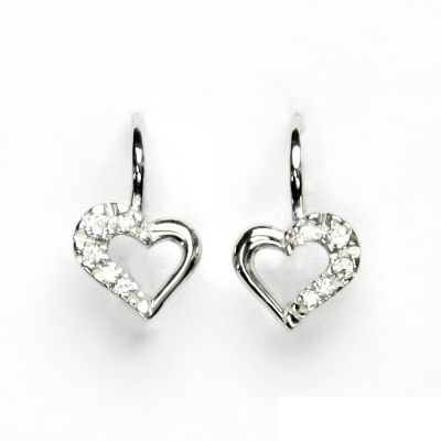 Náušnice z bílého zlata mají tvar srdíčka a jsou zdobeny čirými zirkony. Zapínání náušnic je na patent. Celková výška náušnic je 17 mm. Orientační váha přívěsku 1,77 g. Materiál je zlato ryzosti 585/1000.