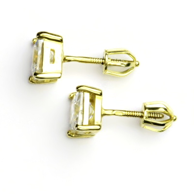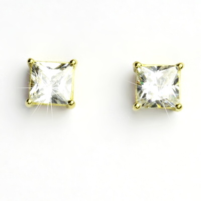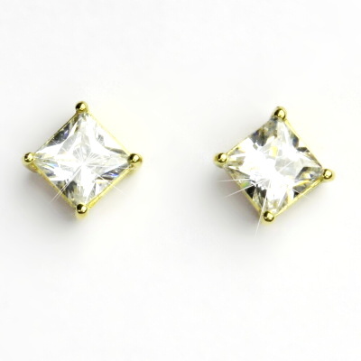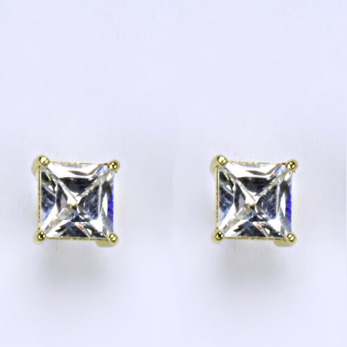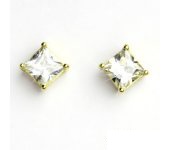 Náušnice ze žlutého zlata jsou zdobeny čirým zirkonem o rozměru 6x6 mm. Materiál je zlato 585/1000. Orientační váha náušnic je 2,76 g. Náušnice mají zapínání na šroubek.