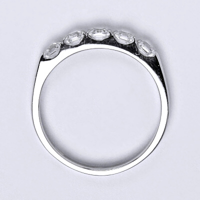 Prstýnek je vyrobený z bílého zlata 14 karátů 585/1000. Prstýnek je osazený syntetickými zirkony, velikost každého zirkonu je 3 mm.