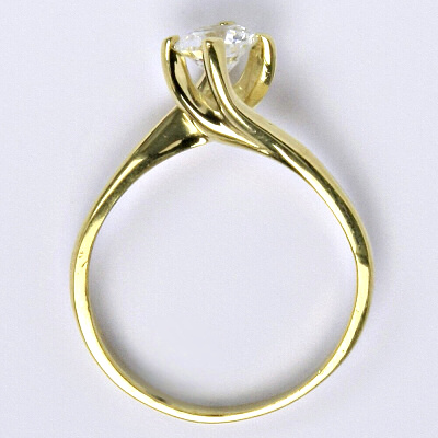 Zlatý prsten s čirým zirkonem.Zboží zařazené do akce, vždy máme jen jeden kus skladem. Materiál je Zlato 585/1000 (14 karátů). Váha prstenu je 2,75 g. Velikost prstenu je 56,5.