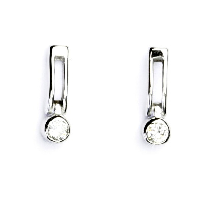 Náušnice z bílého zlata jsou zdobeny čirým zirkonem. Rozměr zdobné části náušnice je 14x4 mm. Materiál je zlato 585/1000. Náušnice mají zapínání na šroubek a jsou rhodiované. Orientační váha náušnic je 1,90 g.