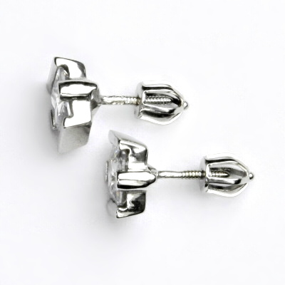 Náušnice z bílého zlata jsou zdobny čirými zirkony o rozměru 6x6 mm. Materiál je zlato 585/1000. Orientační váha náušnic je 3,18 g. Náušnice mají zapínání na šroubek a jsou rhodiované.