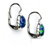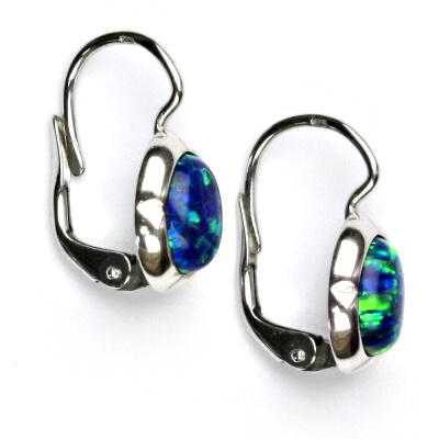 Náušnice z bílého zlata jsou zdobeny zeleným syntetickým opálem o rozměru 8x6 mm. Materiál je zlato 585/1000. Orientační váha náušnice je 3,04 g. Celková výška náušnice je 16 mm.