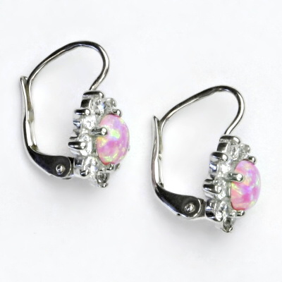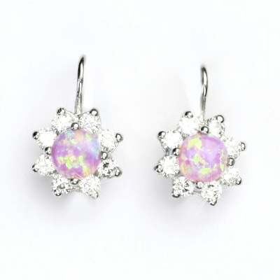 Náušnice z bílého zlata, ve tvaru kytičky, jsou zdobeny čirými zirkony a růžovým syntetickým opálem. Materiál je zlato 585/1000. Celková výška náušice je 16,5 mm a rozměr kytičky je 11x11 mm. Náušnice mají zapínání na klapku a jsou rhodiované.