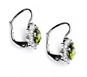 Náušnice z bílého zlata, ve tvaru kytičky, jsou zdobeny čirými zirkony a zirkonem v barvě olivínu o průměru 5,5 mm. Materiál je zlato 585/1000. Celková výška náušice je 16,5 mm a rozměr kytičky je 11x11 mm. Náušnice mají zapínání na klapku a jsou rhodi
