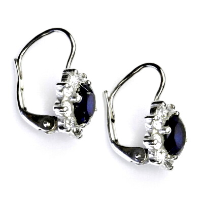 Náušnice z bílého zlata, ve tvaru kytičky, jsou zdobeny čirými zirkony a zirkonem v barvě safíru o průměru 5,5 mm. Materiál je zlato 585/1000. Celková výška náušice je 16,5 mm a rozměr kytičky je 11x11 mm. Náušnice mají zapínání na klapku a jsou rhodi&