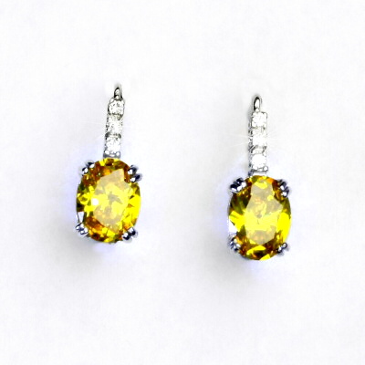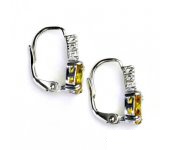 Náušnice z bílého zlata jsou zdobeny malými čirými zirkony a žlutým zikronem o rozměru 8x6 mm. Celková výška náušnice je 16 mm. Náušnice mají zapínání na klapku. Materiál je zlato 585/1000. Orientační váha je 2,6 g.