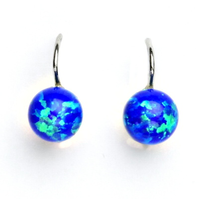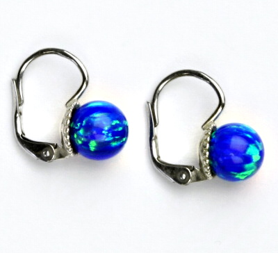 Náušnice z bílého zlata jsou zdobeny syntetickým tmavě modrým opálem - kulička o průměru 8 mm. Materiál je zlato 585/1000. Orietnační váha náušnic je 3,15 g. Celková výška náušnice je 15 mm. Náušnice mají zapínání na klapku a jsou rhodiované.