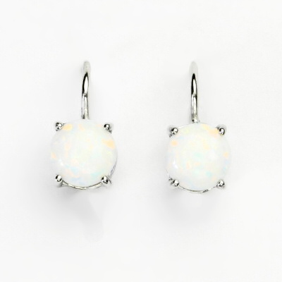 Náušnice z bílého zlata se syntetickým bílým opálem o průměru 7 mm. Náušnice mají zapínání na klasický patent. Celková výška náušnice je 14 mm. Orientační váha náušnic je 2,77g.