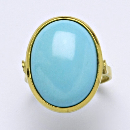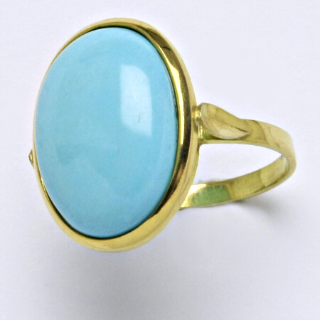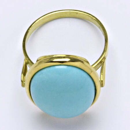 Velikost prstenu 58. Prsten je zdoben rekonstruovaným tyrkys.