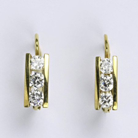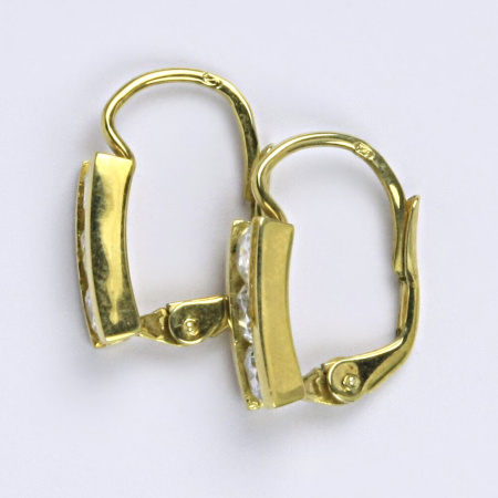 Náušnice jsou vyrobeny ze žlutého zlata 14 karátů 585/1000, zdobeny syntetickými zirkony 3,25 mm. Zapínání na náušnicích je klasický patent. Celková velikost náušnice 16 mm. Orientační váha náušnic je 2,74 g.