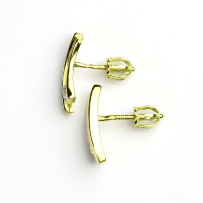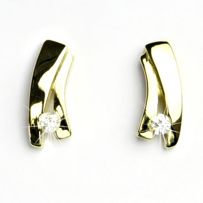 Náušnice ze žlutého zlata jsou zdobeny čirými zirkony o průměru 3 mm. Materiál náušnic je zlato 585/1000. Rozměr zdobné části náušnice je 15 mm na výšku a 6 mm na šířku. Náušnice mají zapínání na šroubek. Orientační váha náušnic je 2,41 g.