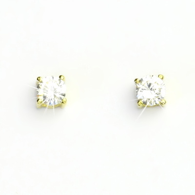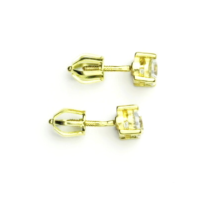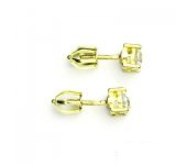 Náušnice ze žlutého zlata jsou zdobeny čirými zirkony o průměru 4,5 mm. Náušnice mají zapínání na šroubek. Materiál je zlato 585/1000. Orientační váha náušnic je 1,34 g.
