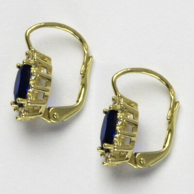 Náušnice jsou vyrobeny ze žlutého zlata. Jsou zdobeny spinely o rozměru 7x5 mm a malými čirými zirkony. Materiál je zlato 585/1000. Orientační váha náušnice 3,40 g.