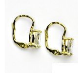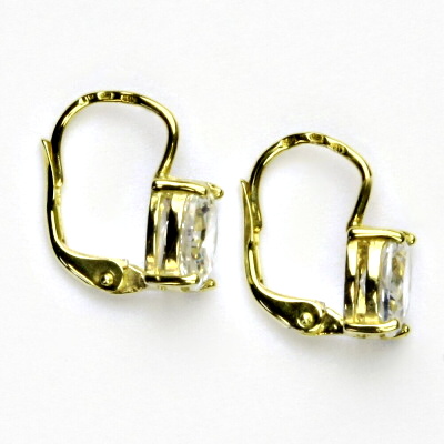 Náušnice ze žlutého zlata s čirým zirkonem o rozměru 8x6 mm. Materiál je zlato 585/1000. Orientační váha náušnic je 2,67 g. Celková výška náušnice je 15 mm.
