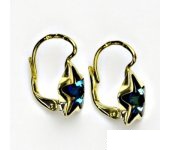 Náušnice ze žlutého zlata, ve taru hvězdičky, jsou zdobeny Swarovski krystaly - barva bermuda blue. Náušnice mají zapínání na klapku. Materiál je zlato 585/1000. Rozměr zdobné části náušnice je 12x12 mm. Celková výška náušnice je 17,5 mm.
