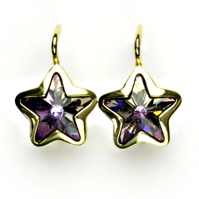 Náušnice ze žlutého zlata, ve taru hvězdičky, jsou zdobeny Swarovski krystaly - barva vitrail light. Náušnice mají zapínání na klapku. Materiál je zlato 585/1000. Rozměr zdobné části náušnice je 12x12 mm. Celková výška náušnice je 17,5 mm.