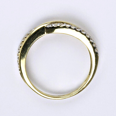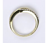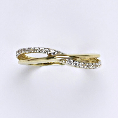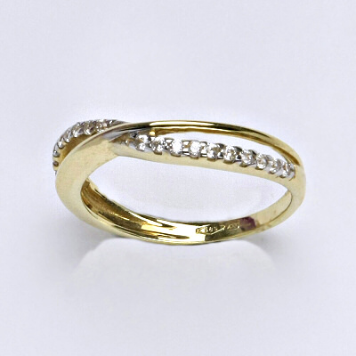 Prsten je vyrobený ze žlutého zlata, zdobený čirými syntetickými zirkony. Materiál je zlato 14 karátů 585/1000.