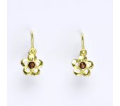 Zlaté dětské náušničky s granátem ve tvaru kytičky, žluté zlato. Celková výška náušnice je 14 mm. Orientační váha náušnic je 0,80 g.