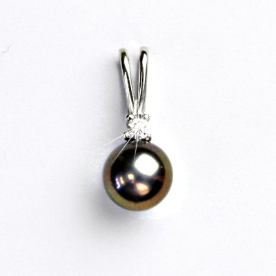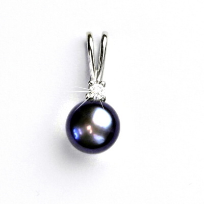 Zlatý přívěšek z bílého zlata s černou přírodní říční perlou. Průměr perly je 8 mm. Celková výška přívěsku je 18 mm. Materiál je zlato 585/1000. Přívěsek má povrchovou úpravu čisté rhodium. Orientační váha přívěsku je 1,45 g.