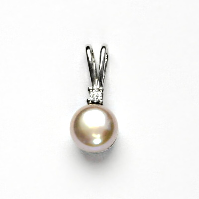 Zlatý přívěšek z bílého zlata s růžovou přírodní říční perlou. Průměr perly je 8 mm. Celková výška přívěšku je 18 mm. Materiál je zlato 585/1000. Přívěsek má povrchovou úpravu čisté rhodium. Orientační váha přívěsku je 1,45 g.