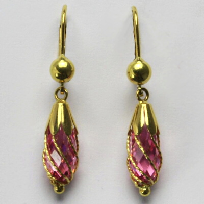 Náušnice jsou vyrobeny ze žlutého zlata o ryzosti 14 karátů 585/1000. Náušnice jsou zdobeny růžovým zirkonem. Orientační váha je 6,81 g. Zapínání je na klapku. Celková výška náušnice je 48 mm.