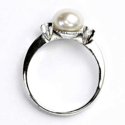 Prstýnek z bílého zlata je zdoben čirými zirkony a bílou přírodní říční perlou. Průměr perli je 7,5 - 8 mm. Orientační váha prstenu ve velikosti 53 je 2,84 g. Materiál je zlato 585/1000.