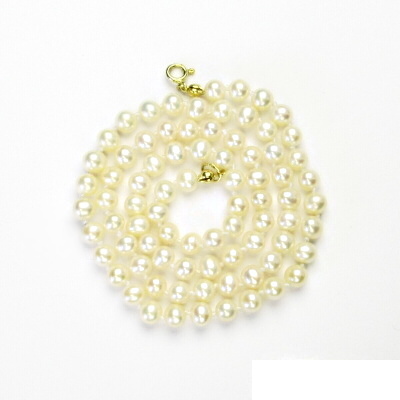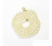 Náhrdelínk z přírodních říčních perel o průměru 8 mm. Délka náhrdelníku je 44 - 45 cm. Náhrdelník má zapínání ze žlutého zlata. Materiál zapínání je zlato 585/1000. Orientační váha zapínání je 0,65 g. Je možné vyhotovit také se zabínáním z bílého zlata