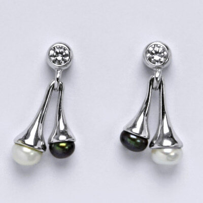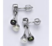 Náušnice jsou vyrobené z bílého zlata 14 karátů 585/1000, zdobené pravou říční bílou a černou perlou. Průměr bílé perly je 4 mm, průměr černé perly je 3,5 mm. Zapínání na náušnicích je šroubek. Při více kusech skladem je váha šperku orientační.