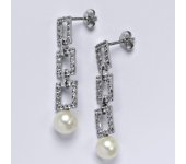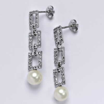 Náušnice jsou vyrobené z bílého zlata 14 karátů 585/1000, zdobené pravou říční bílou perlou a syntetickým zirkonem. Průměr perly je 8 mm. Celková velikost náušnice je 38 mm. Zapínání na náušnicích je puzeta.