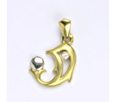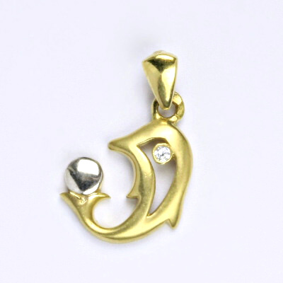 Přívěsek, delfín, je v kombinaci žluté a bílé zlato 14 karátů 585/1000, zdobený syntetickým zirkonem. Celková velikost přívěsku včetně ouška je 22 mm. Při více kusech skladem je váha orientační.