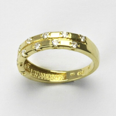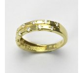 Prsten je vyrobený ze žlutého zlata, je zdobený syntetickými zirkony. Materiál je zlato o ryzosti 14 karátů 585/1000. Orientační váha prstenu je 2,42 g. Prsten máme skladem ve velikosti 54. Rozměr vrchní (zdobné) části je 4 mm.
