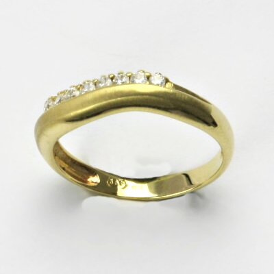 Prsten je vyrobený ze žlutého zlata. Prsten je zdoben syntetickými zirkony. Materiál je zlato o ryzosti 14 karátů 585/1000. Orientační váha prstenu je 2,42 g. Prsten máme skladem ve velikosti 56.
