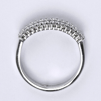 Zlatý prsten je vyrobený z bílého zlata, zdobený syntetickým zirkonem. Velikost prstenu je 55,5. Materiál je zlato 14 karátů 585/1000.
