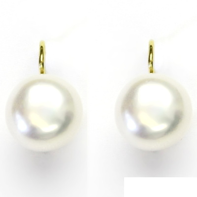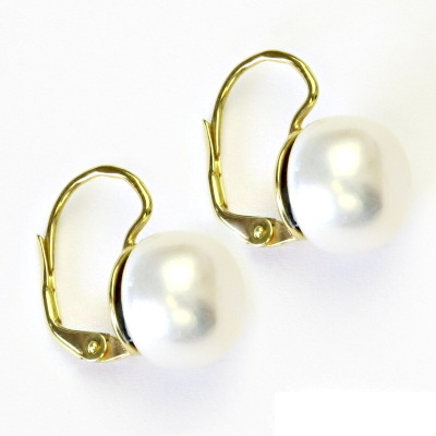Náušnice ze žlutého zlata jsou zdobeny bílou přírodní říční perlou. Průměr perly je cca 11-12 mm. Náušnice mají zapínání na patent. Materiál je zlato 585/1000. Orientační váha náušnic je cca 6,24 g.