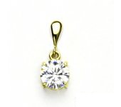Přívěsek ze žlutého zlata s čirým zirkonem o průměru 8 mm. Materiál je zlato 585/1000. Orientační váha přívěsku je 1,97 g. Rozměr přívěsku je 19 mm včetně úchytu na výšku a 8 mm na šířku.