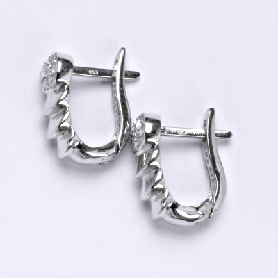 Náušnice jsou vyrobené z bílého zlata 14 karátů 585/1000, zdobené syntetickým zirkonem. Celková velikost náušnice je 13 mm. Zapínání na náušnicích je pasivní patent. Při více kusech skladem je váha šperku orientační.