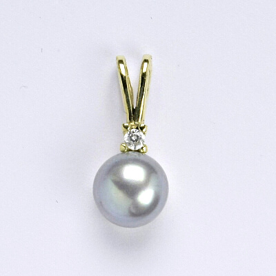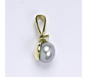 Zlatý přívěšek ze žlutého zlata s přírodní říční šedou perlou. Velikost perly je 8 mm. Celková výška přívěšku je 18 mm. Materiál je zlato 14 karátů 585/1000. Orientační váha přívěsku je 1,45 g.