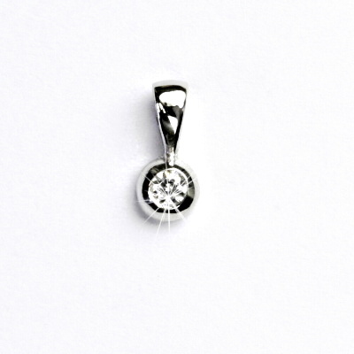 Přívěsek z bílého zlata je zdoben čirým zirkonem o průměru 3 mm. Materiál je zlato 585/1000. Orientační váha přívěsku je 0,57 g. Rozměr přívěsku je 12 mm na výšku a 5 mm na šířku.