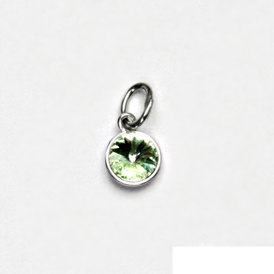 Přívěsek z bílého zlata je zdoben Swarovski krystalem chrizolit. Průměr Swarovski krystalu je 5 mm. Celková výška přívěsku i se závěsem je 13 mm. Materiál přívěsku je zlato 585/1000. Orientační váha je 0,45 g.