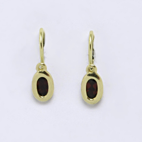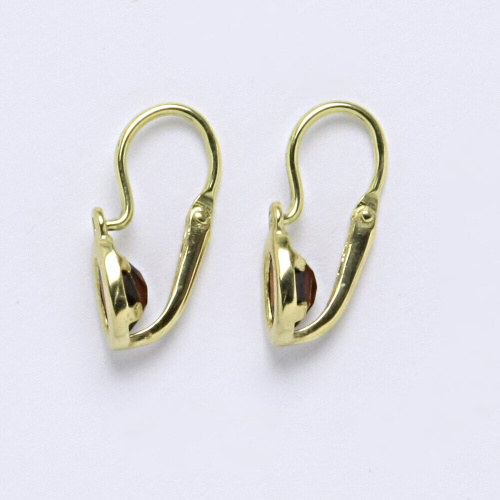 Dětské náušnice žluté zlato s přírodním granátem. Celková velikost náušnice je 15 mm. Orientační váha náušnic je 1,03 g.