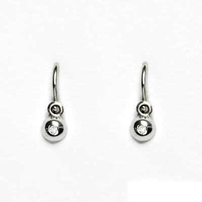 Dětské náušnice z bílého zlata jsou zdobeny čirým zirkonem. Průměr zdobné části náušnice je 4 mm. Celková výška náušnice je 12 mm. Náušnice mají dětské zapínání. Materiál je zlato 585/1000. Orientační váha náušnic je 0,71 g.