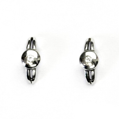 Náušnice z bílého zlata jsou zdobeny čirým zirkonem. Rozměr náušnice je 12 mm na výšku a 5 mm na šířku. Orientační váha náušnic je 1,50 g. Náušnice mají zapínání na šroubek. Materiál je zlato 585/1000.