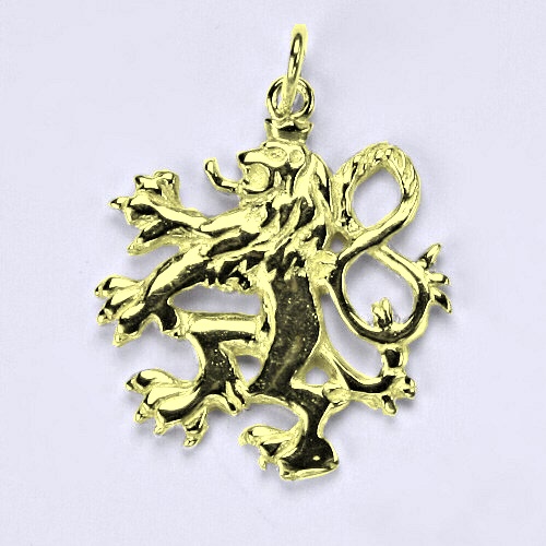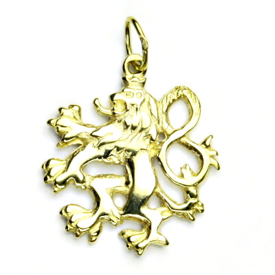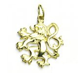 Zlatý přívěsek Český lev. Celková výška přívěsku je 25 mm. Orientační váha přívěsku je 3,23 g. Materiál je 14 karátové žluté zlato 585/1000.