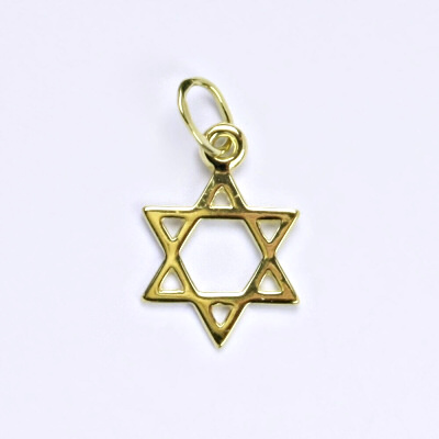 Zlatý přívěšek Davidova hvězda ze žlutého zlata. Celková výška přívěšku je 18 mm. Materiál je žluté zlato 14 karátů 585/1000. Orientační váha přívěšku je 0,46 g.