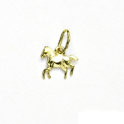 Přívěsek ze žlutého zlatu má tvar koně. Materiál přívěsku je zlato 585/1000. Rozměr přívěsku je 12 mm včetně očka na výšku a 9 mm na šířku. Orientační váha přívěsku je 0,36 g.
